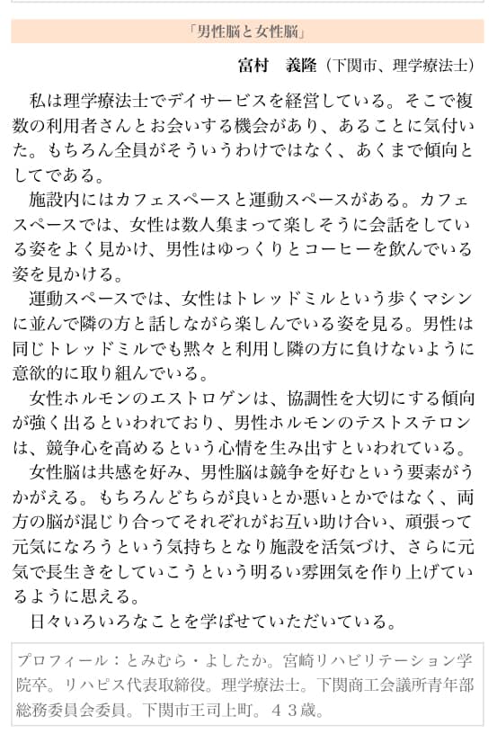 ・2018年 9月17日(月)掲載  「男性脳と女性脳」