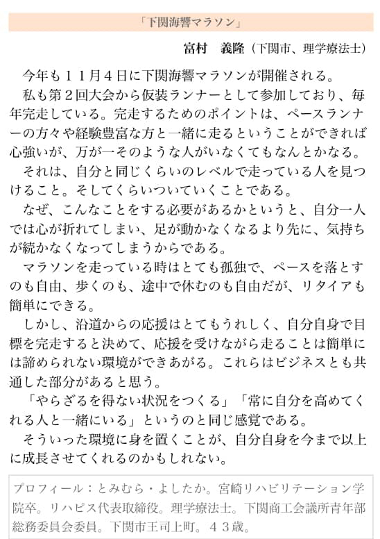 ・2018年 9月24日(月)掲載  「下関海響マラソン」