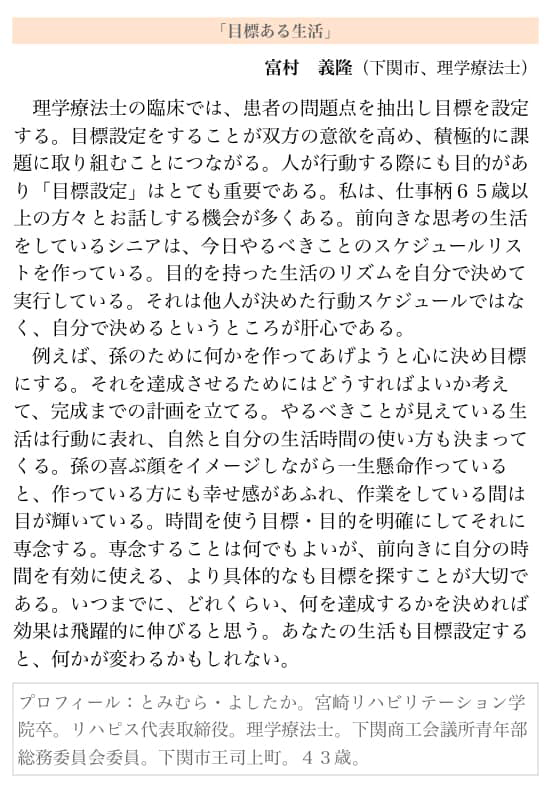 ・2018年10月 1日(月)掲載  「目標ある生活」